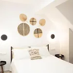 تتكوّن شقة Mykonos Dot من الفناء والشرفة وركن ارتداء الملابس، وهي مزوّدة بنوافذ عازلة للصوت، وتوفّر وسائل الراحة مثل مكيف الهواء. يتم توفير الأريكة للضيوف، بالإضافة إلى مجموعة متنوعة من خيارات وسائل الإعلام، بما في ذلك التلفزيون والتلفزيون بشاشة مسطحة مع قنوات فضائية. تتوفّر أسرّة مع الوسائد الزغبية المضادة للحساسية تحت تصرف الضيوف. يشتمل الحمام على شطافة بيديه والمرحاض المنفصل والدوش، كما تمّ تجهيز الحمام بمجفف الشعر وملاءات الحمام.